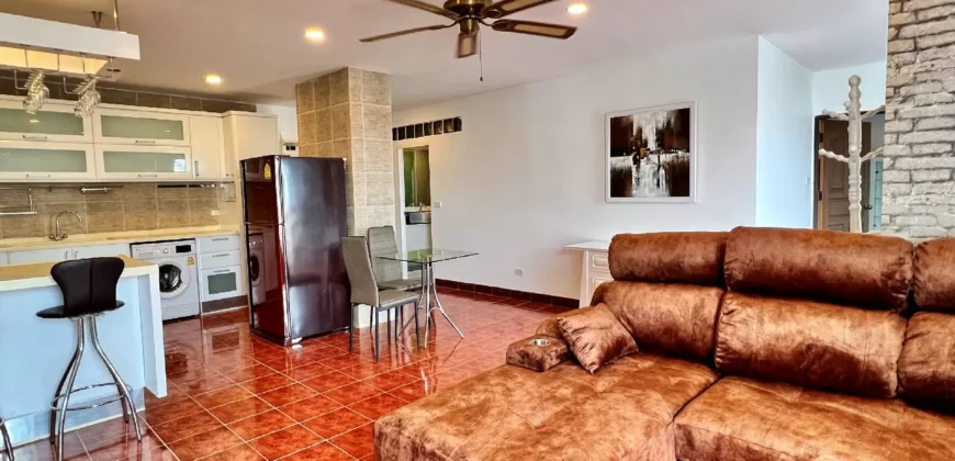 This spacious 95 sq.m. unit offers a unique layout with 1 large bedroom, 2 bathrooms, dual balconies, and a walk-in wardrobe – rare for a 1-bedroom! The European kitchen, breakfast bar, and sea views create a sophisticated living experience in one of Jomtien’s most iconic buildings.